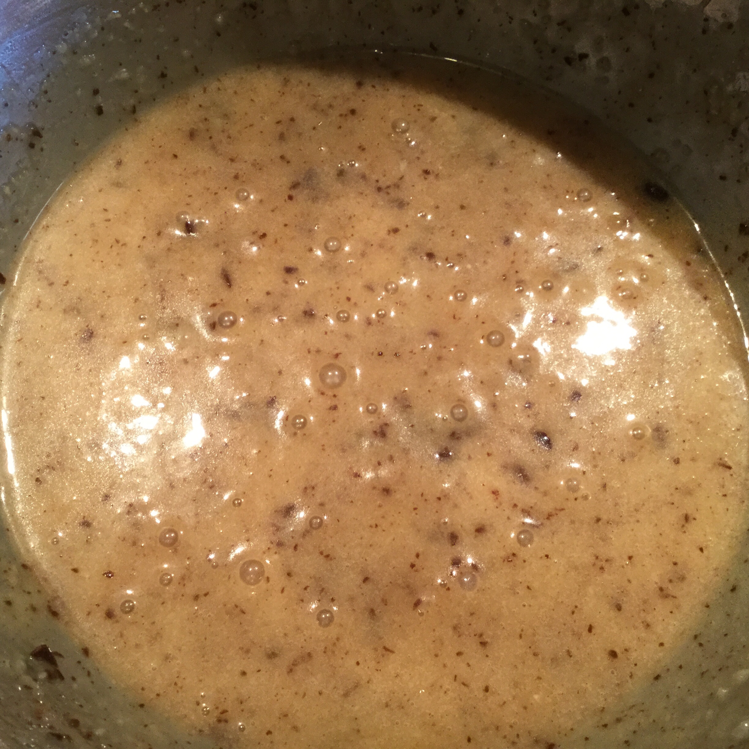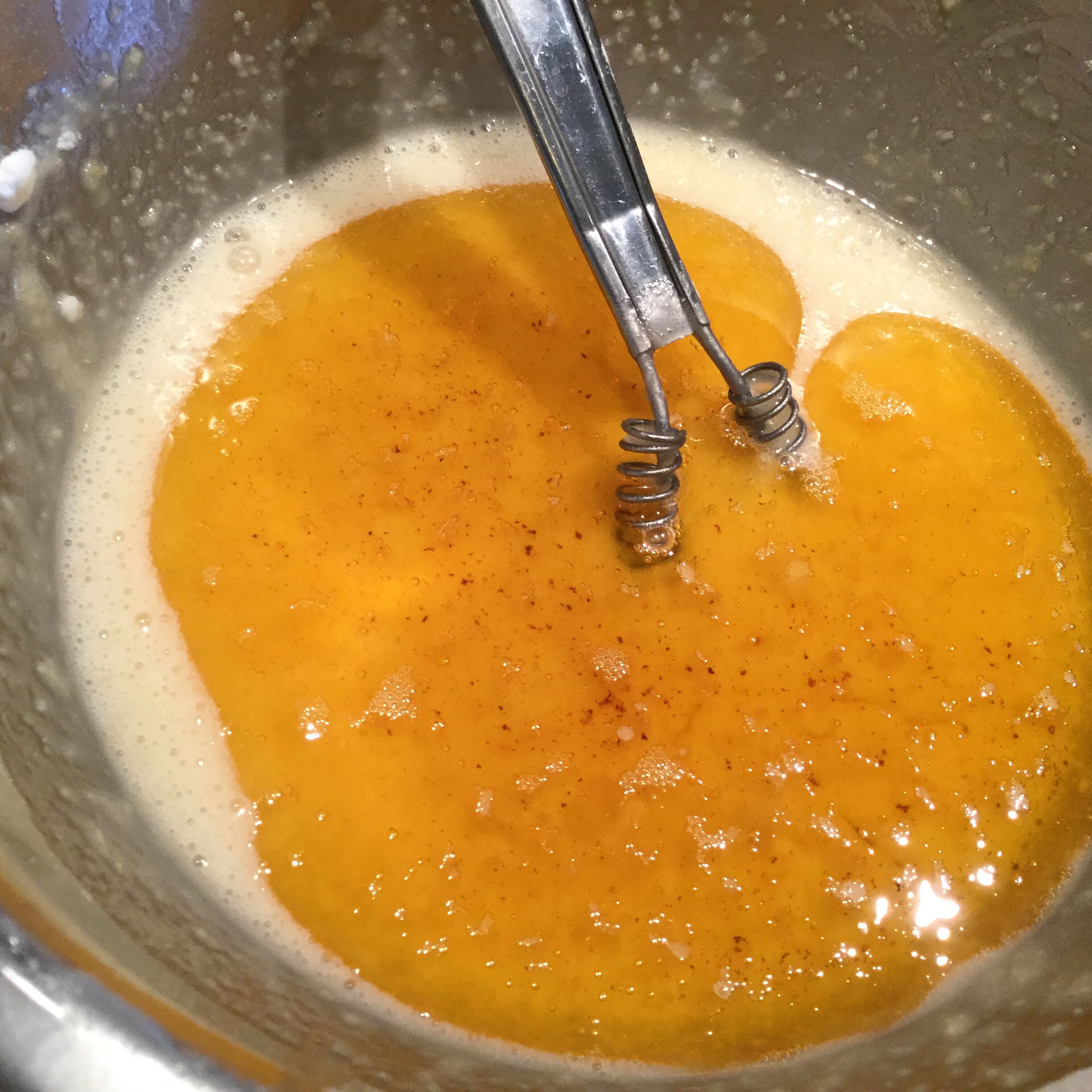 Placez les 80 g de beurre dans la casserole et laissez le fondre jusqu’à ce qu’il ait une couleur noisette. Vous allez l’entendre chanter ce doux beurre. On dit d’ailleurs que lorsqu’il arrête de chanter il est noisette. En plus, de sa belle couleur ambrée, une délicieuse odeur de noisette va s’emparer de vos narines. Attention, à ne pas le faire brûler.