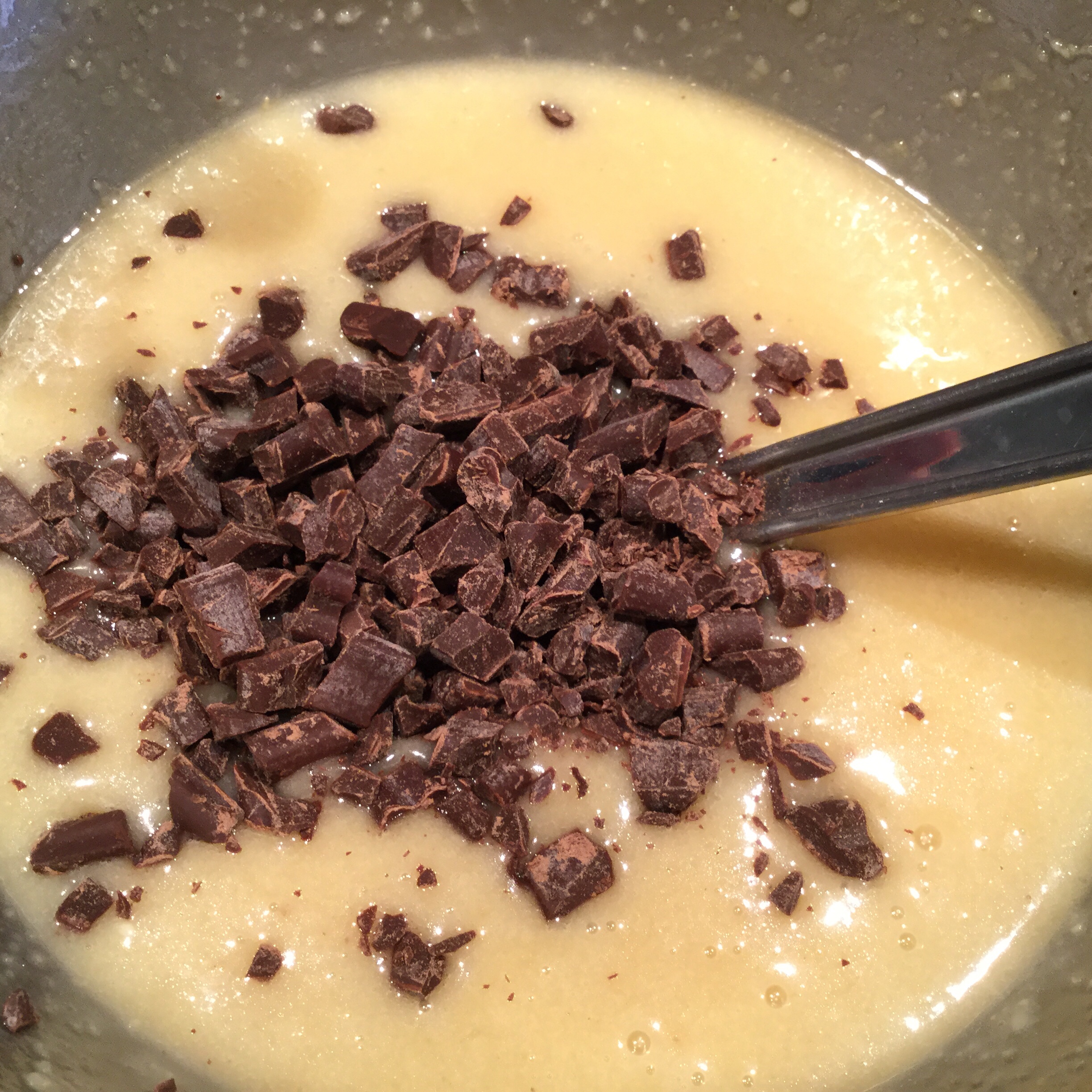 Enfin, incorporez les 125 g de pépites de chocolat.
