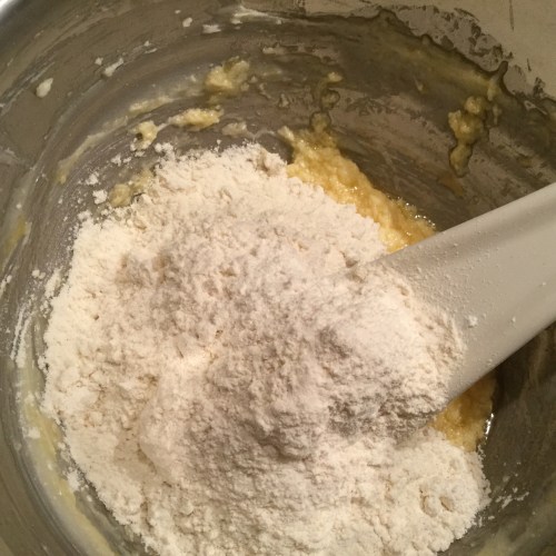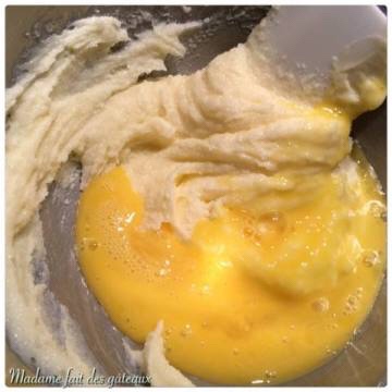 Rajoutez les 100 g de farine et les 12 g de poudre d’amande. Il ne faut surtout pas trop travailler la pâte sinon elle se rétractera à la cuisson.