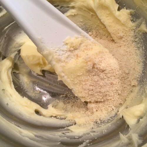 Commencez par crémer les 60 g de beurre, qui doivent être pommade, avec les 38 g de sucre glace.