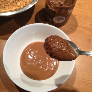 Rajoutez le mélange chocolat/praliné et mélangez jusqu’à ce que le mélange soit homogène.