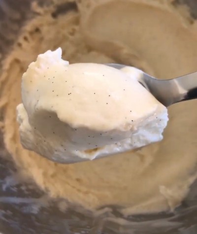 Si vous avez une turbine, versez la crème anglaise dedans et laissez travailler la machine jusqu’à ce que la crème se transforme en glace.