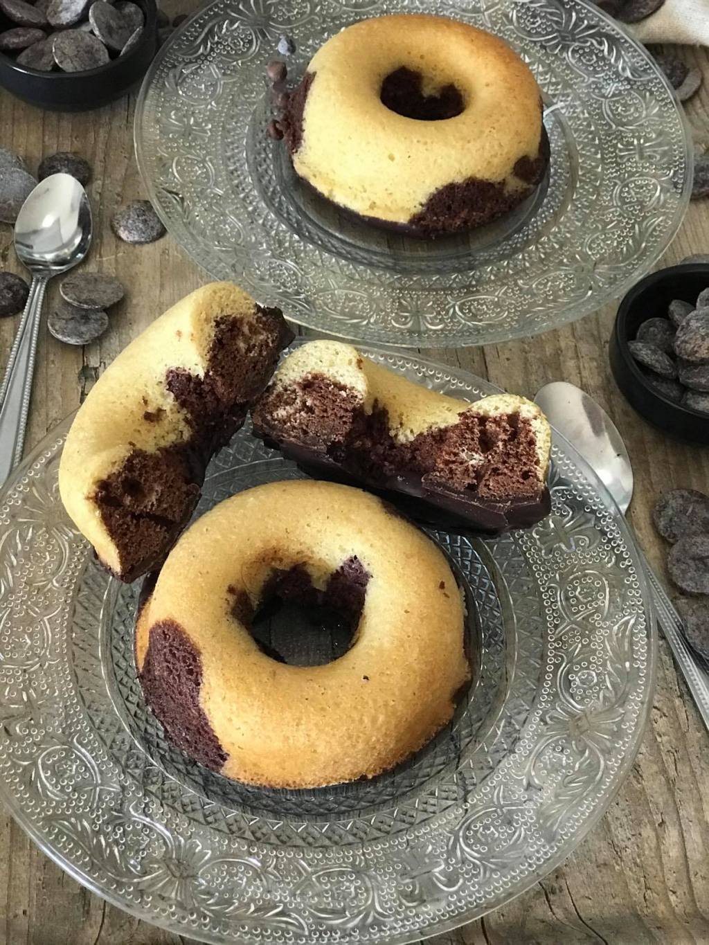 Dans ma lutte contre les gouters industriels j’avais envie de trouver une recette qui se rapproche des donuts marbrés en rajoutant un peu de gourmandise avec une coque en chocolat.