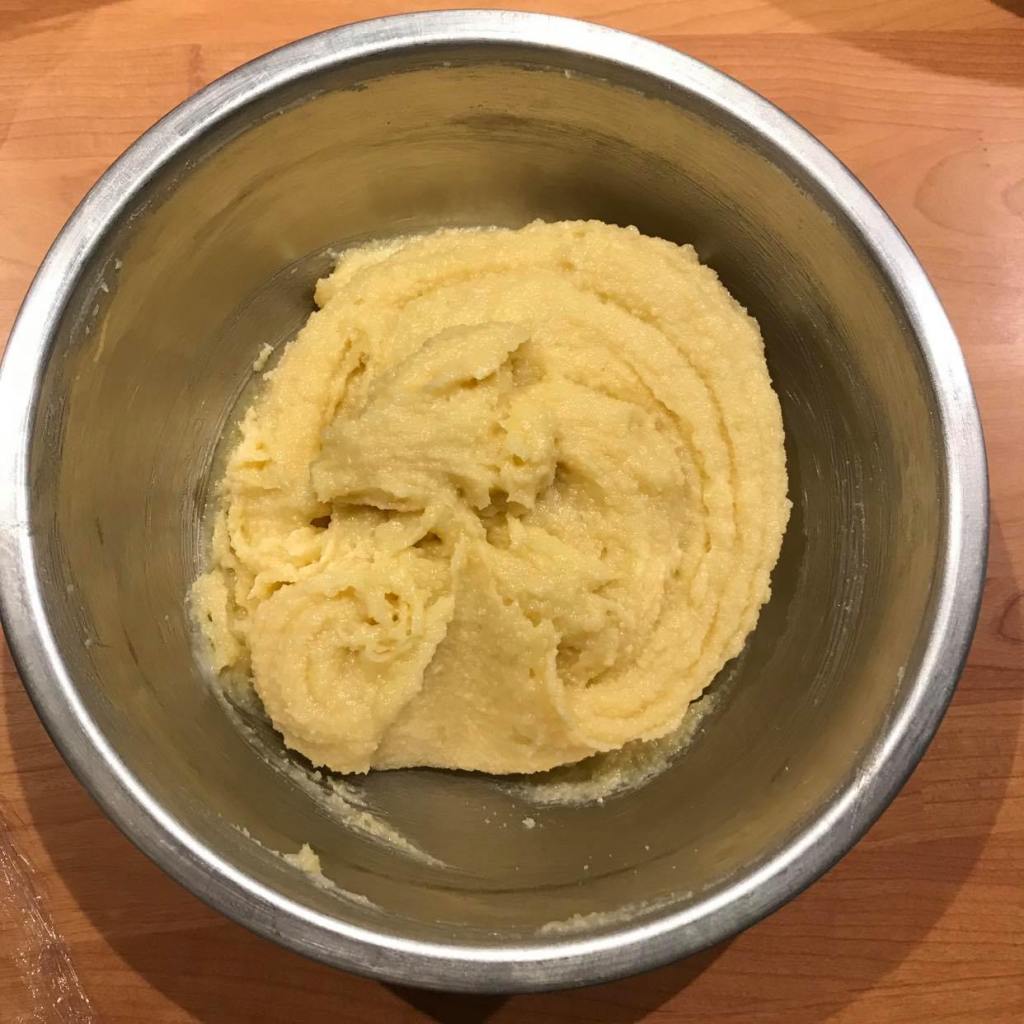 Commencez par mélanger les 110 g de beurre pommade avec les130 g de sucre glace.