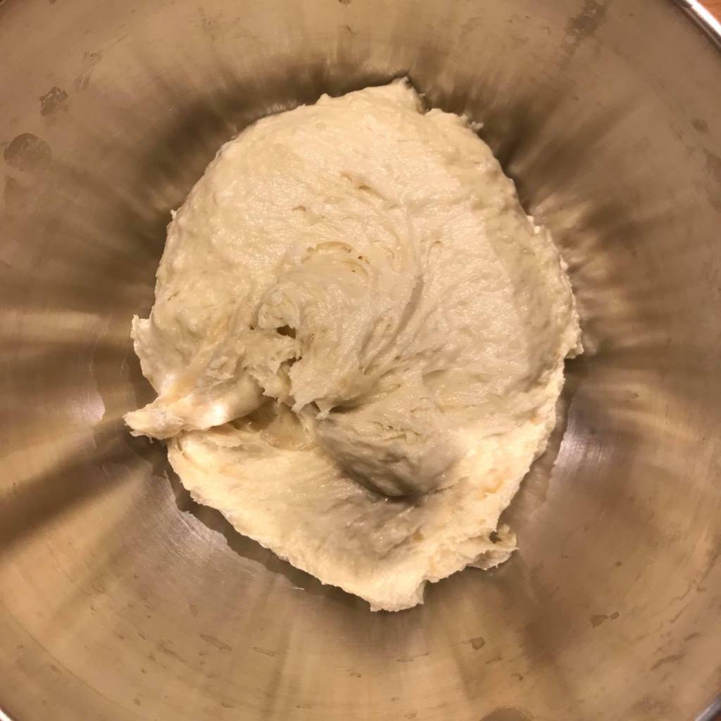 Incorporez les 100 g de beurre mou et continuez à pétrir environ 10 minutes. La pâte doit être homogène et se détacher des parois.