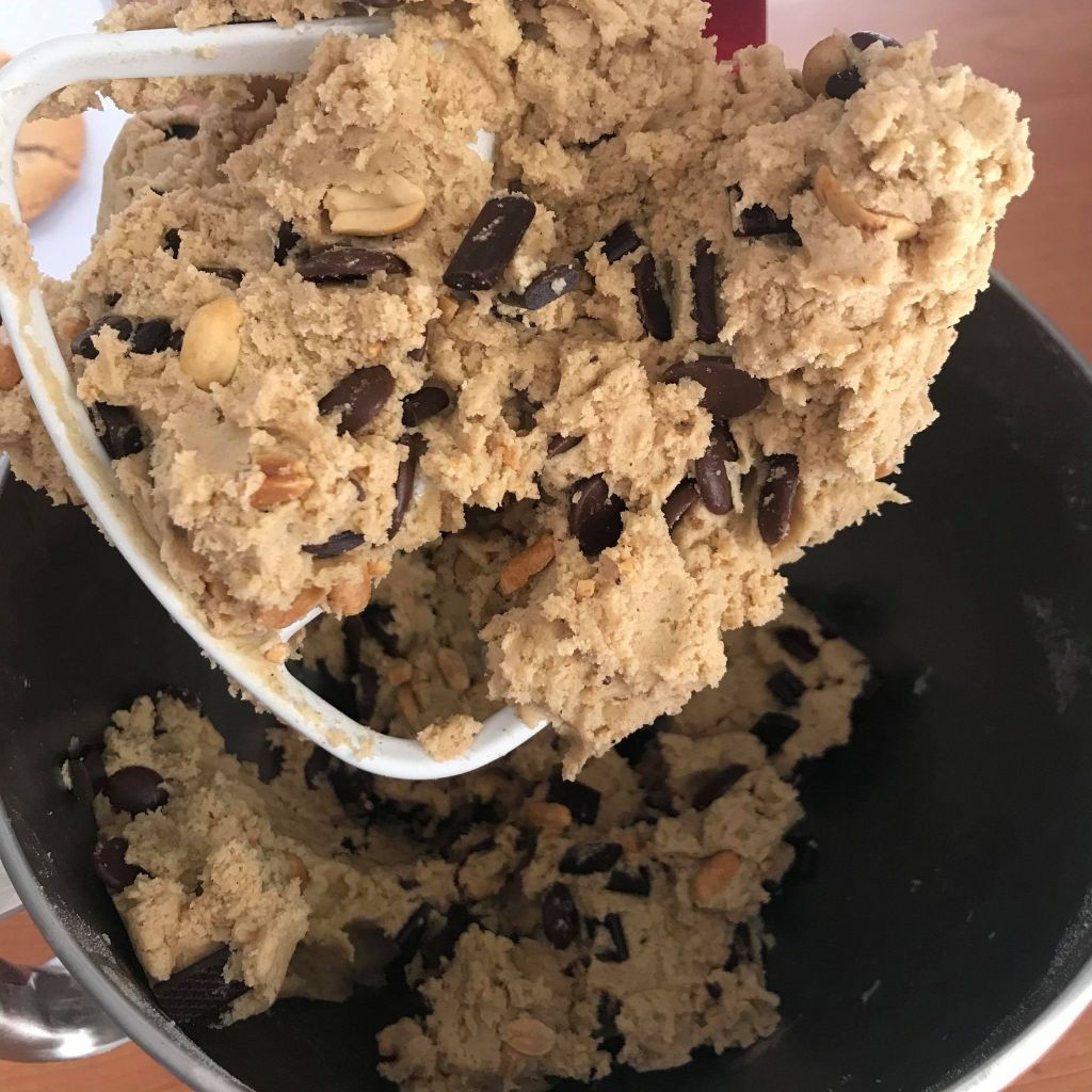 Attention espacez bien vos cookies pour éviter qu’ils se collent à la cuisson car ils vont s’étaler. Pour encore plus de gourmandise rajoutez encore un peu de chocolat et quelques cacahuètes si vous le voulez.