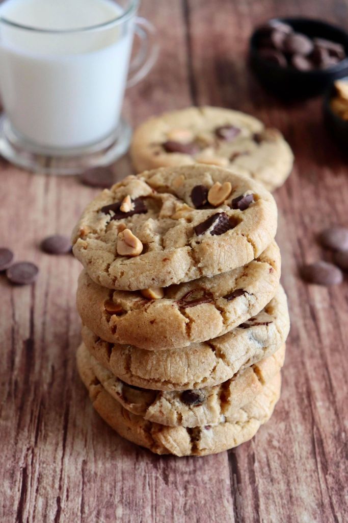 Cette recette contient du beurre de cacahuète ce qui permet de réduire l’apport en beurre et accentue le goût de cacahuète.