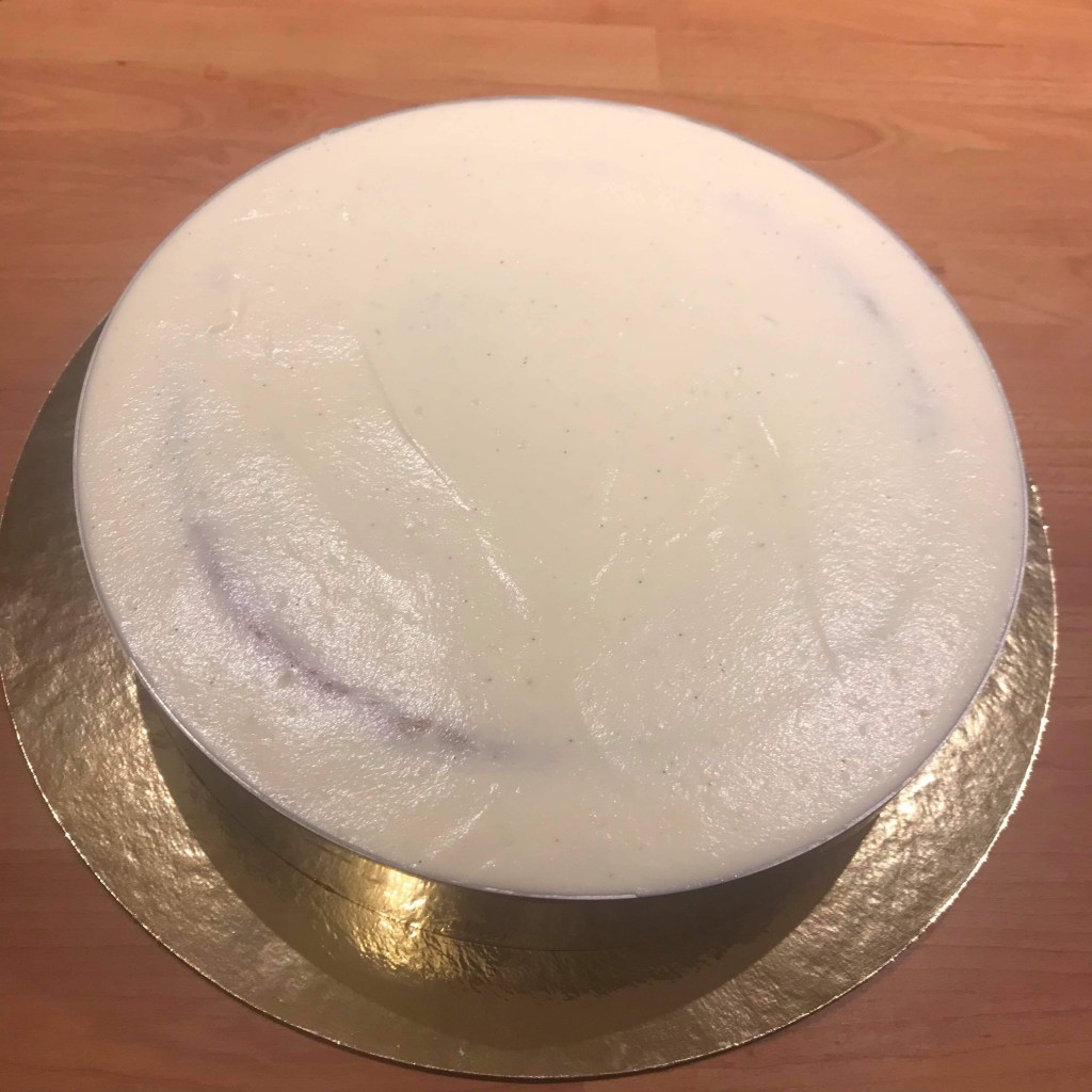 Enfin, déposez une couche de crème. Lissez bien les bords pour un joli démoulage.