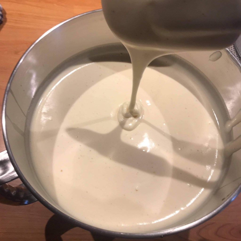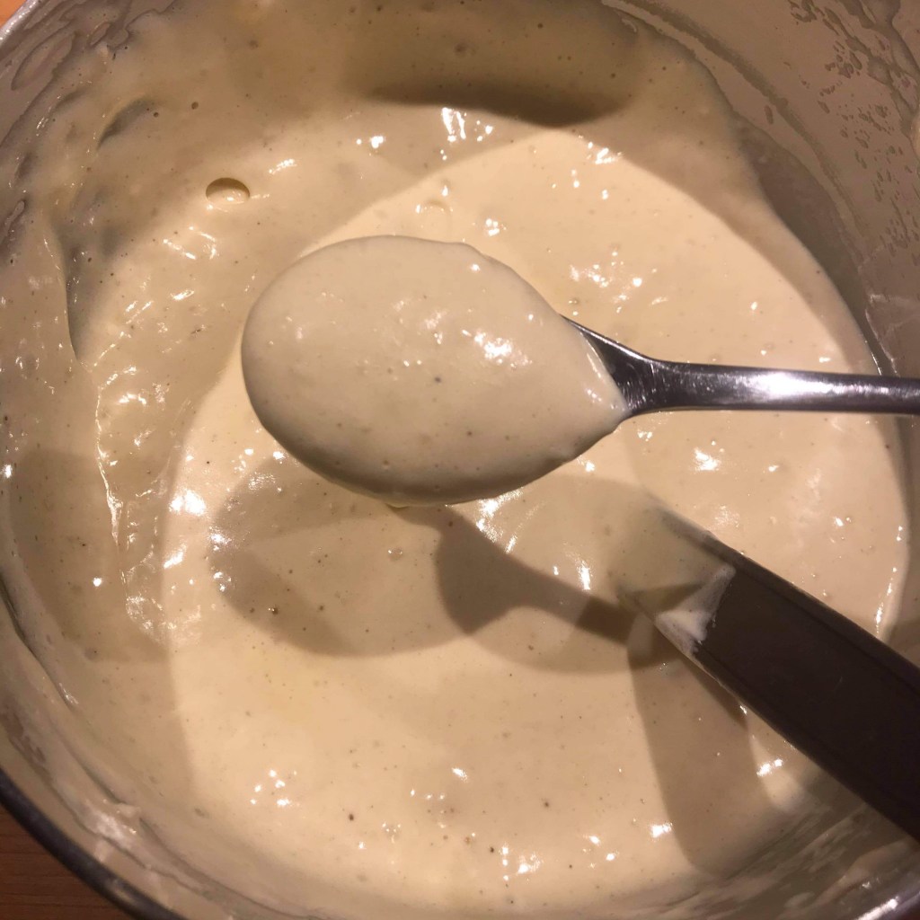 Reversez le tout dans la casserole toujours en mélangeant pour ne pas obtenir des grains dans votre crème. Cuire à 85 degrés. Si vous n’avez pas de thermomètre comptez 3 minutes dès l’épaississement de la crème et surtout des premières bulles.