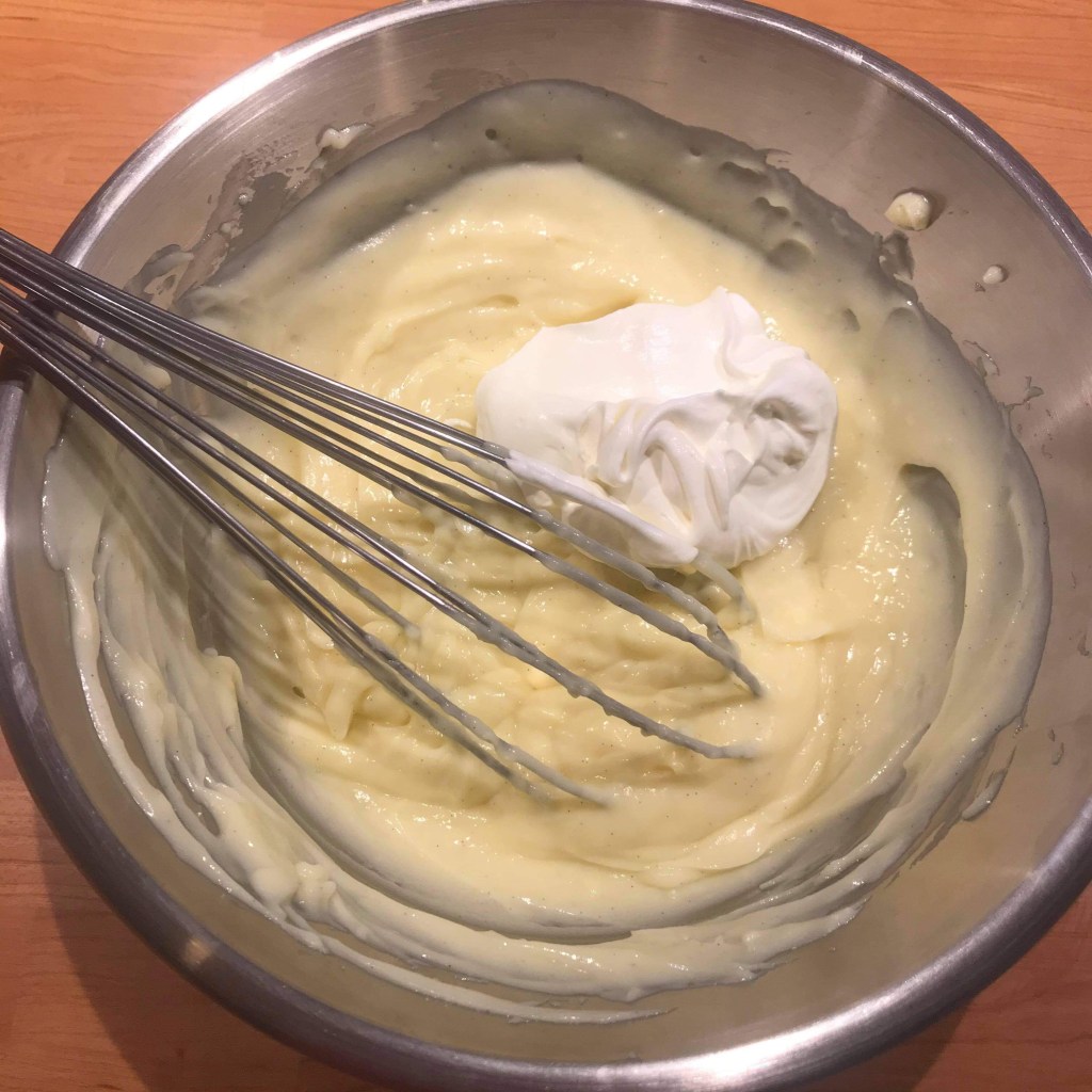 Prélevez un peu de crème fouettée et mélangez-la à la crème pâtissière.