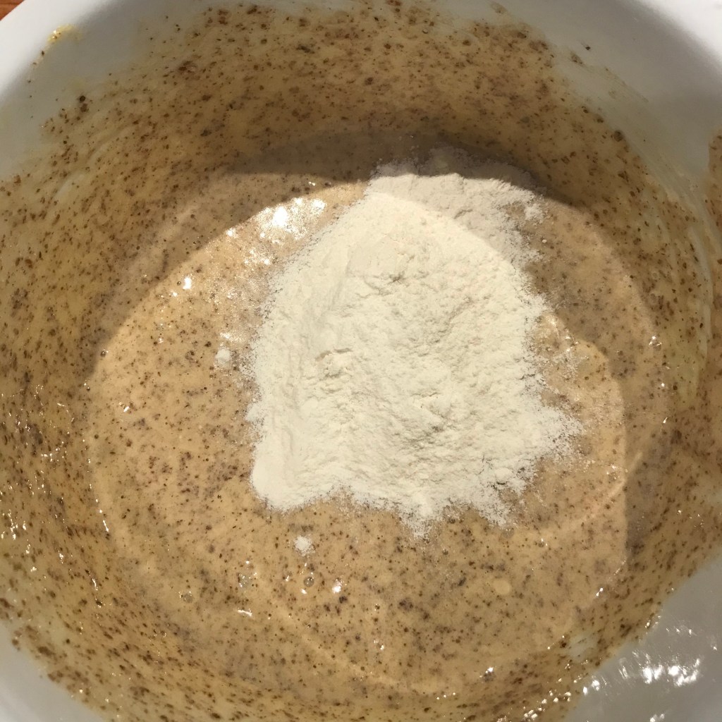 Comme pour chaque recette commencez par faire les pesées et préchauffez votre four à 170 degrés.