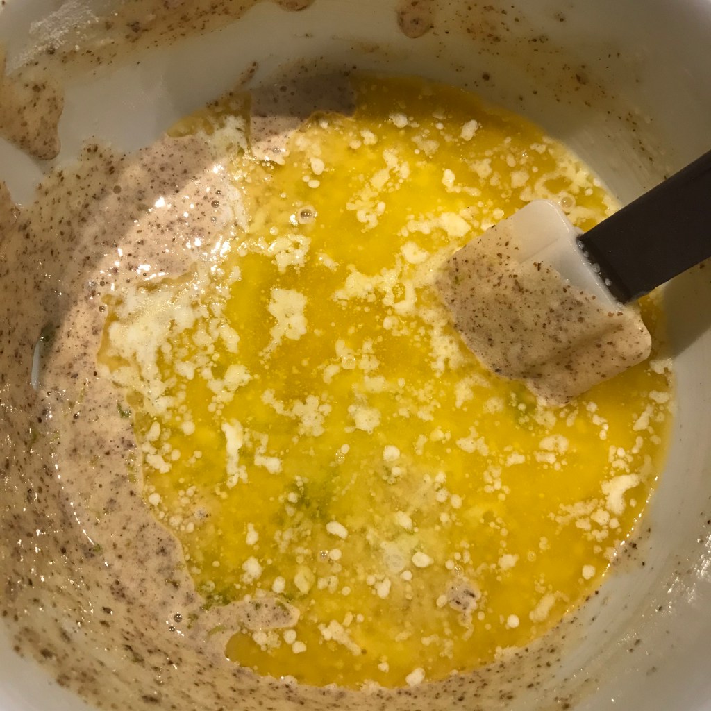 Incorporez délicatement à la Maryse les 40 g de farine puis les 100 g de beurre tiède.
