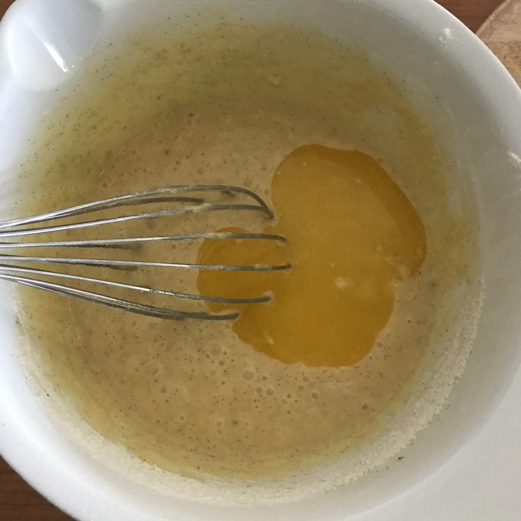 Terminez en rajoutant les 65 g de beurre fondu mais pas chaud sinon le mélange retombera.