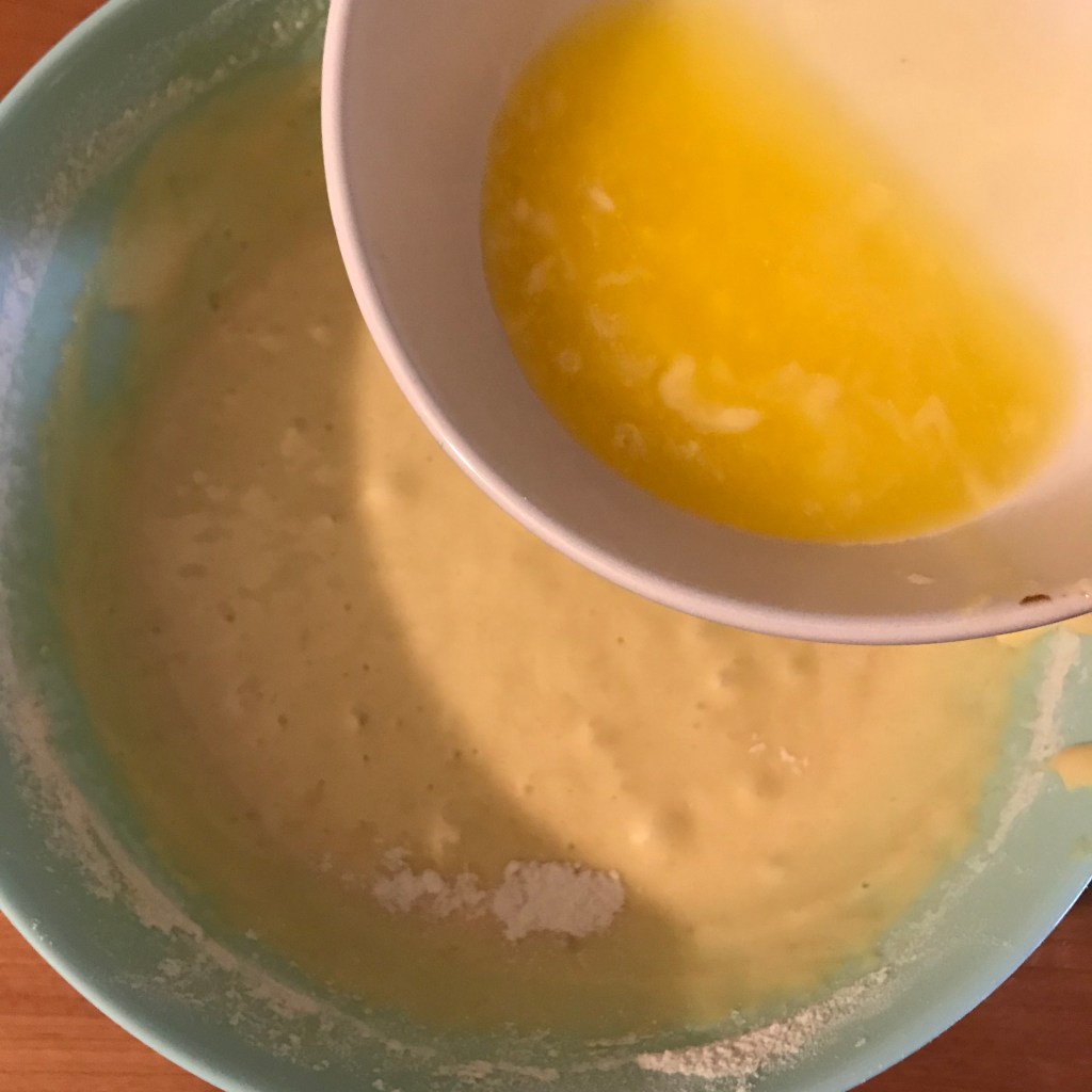Commencez par faire fondre les 50 g de beurre et réservez. Il ne doivent pas être trop chaud.