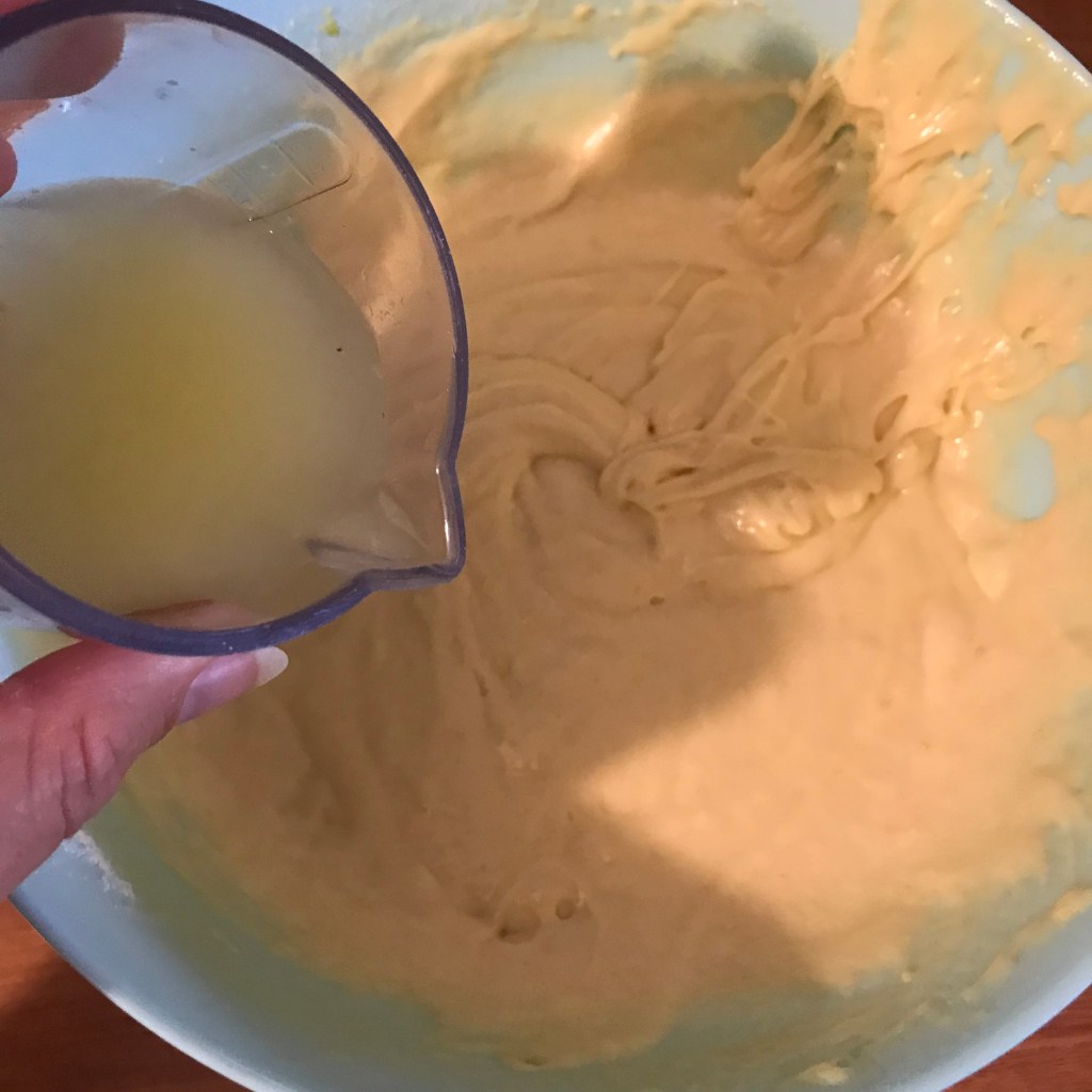 Versez le mélange jus de citron/sucre sur le mélange oeufs/sucre toujours en remuant..