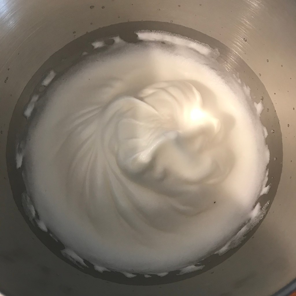 Dans la cuve de votre robot, fouettez les 280 g de crème liquide. Vous devez obtenir une crème qui se tienne mais pas autant qu’une chantilly. Préférez l’aspect d’une mousse à raser. Plus votre crème sera montée plus la mousse sera dense.