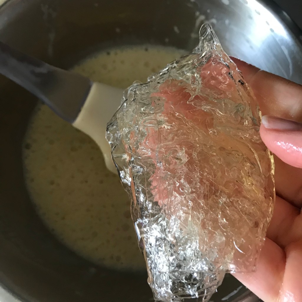 Commencez par hydrater les 2 g de gélatine dans de l’eau bien froide.