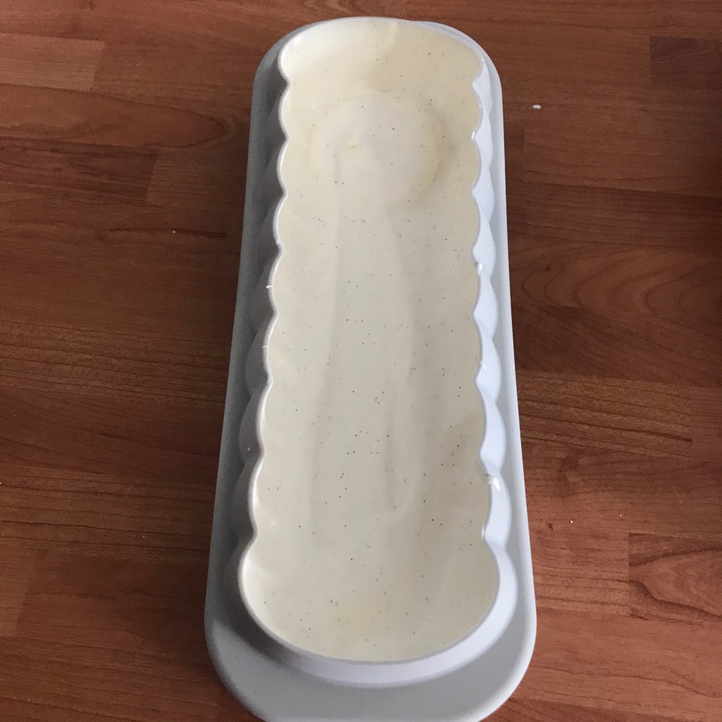 Garnissez votre moule à bûche d’une première couche de mousse au citron. Pensez à bien plaquer et remonter la mousse sur les parois de la bûche pour éviter d’éventuels trous.