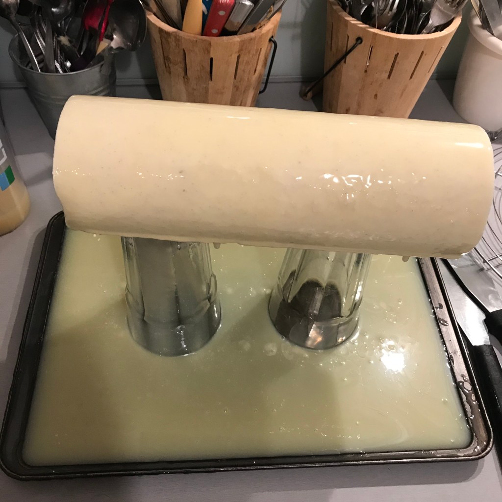 Déposez-la sur deux verres qui seront placés sur un plat qui servira à récupérer le surplus de glaçage.