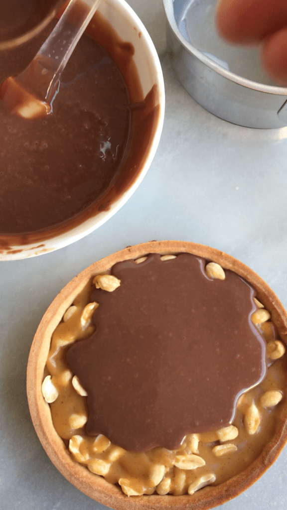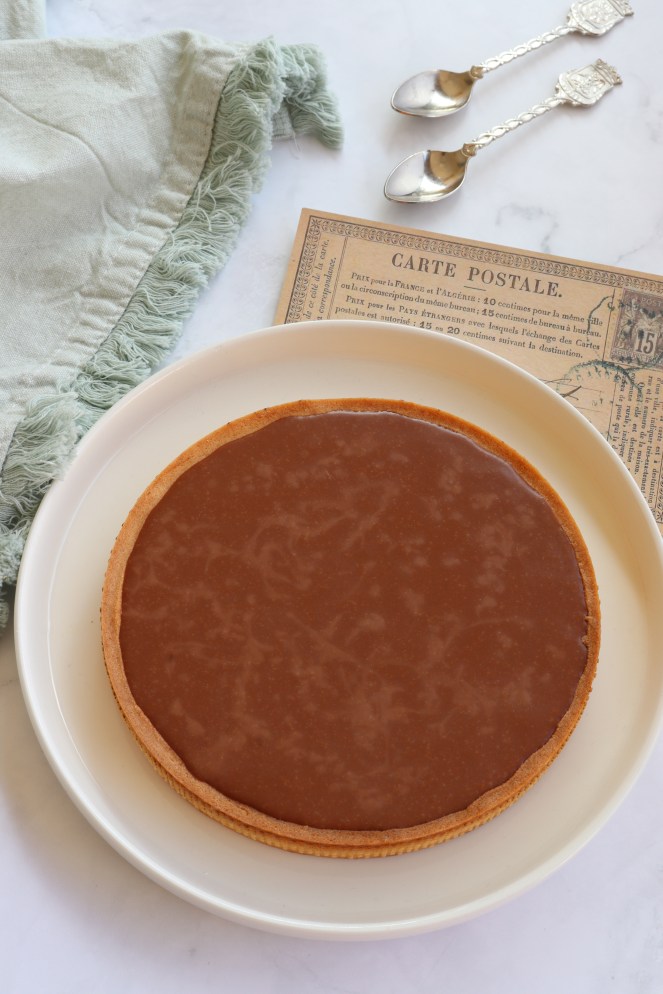 Sur la pâte sucrée, j’ai déposé une généreuse couche de caramel beurre salé mais pas trop non plus. Gare à l’excès de sucre !
